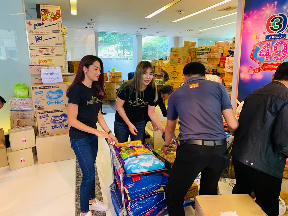 Fullerton Foundation, led by Mint and Alice, was on the ground in Ubon Ratchathani to lend their support to victims in the province. The team brought with them food and medical supplies to the Channel 3 building where necessities are stored before they're dispatched to those affected by the disaster.